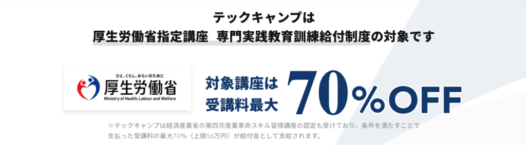 - 対象コースは受講料最大70%OFF(最大56万円)